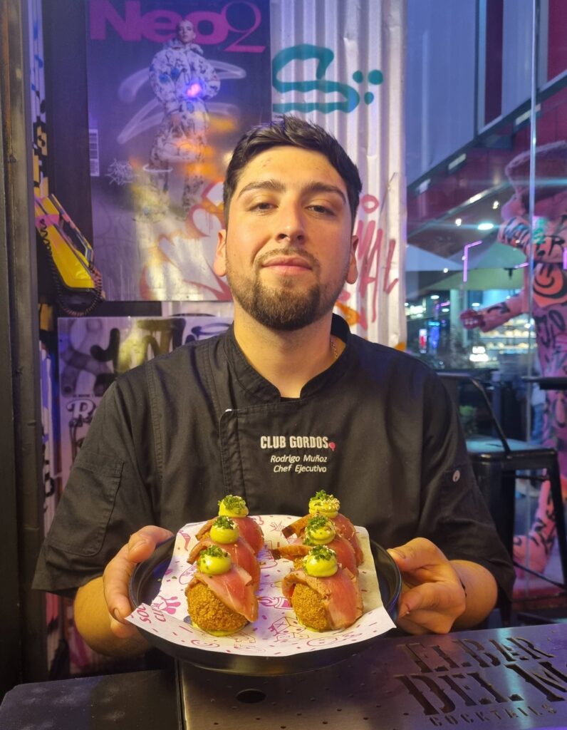 Club Gordos busca sorprender. Al menos así se lo ha propuesto desde hace un par de años esta marca que comenzó antes de la pandemia en Valparaíso y que hoy tiene siete sucursales —dos en Santiago, Viña del Mar, La Serena, Antofagasta, Rancagua y próximamente en Concepción y una expansión internacional—. La idea de sus cuatro socios era dar un salto en la calidad para brindar una experiencia completa en la que se conecte la gastronomía y la coctelería con el ambiente y el servicio; que la estética y la pasión por los graffitis converse con los sabores de cocina y barra. Y lo logra. En ese camino se ha puesto mucha preocupación por los detalles, ya que se busca calidad y originalidad, pero sin olvidar que Club Gordos es transversal, para todos.