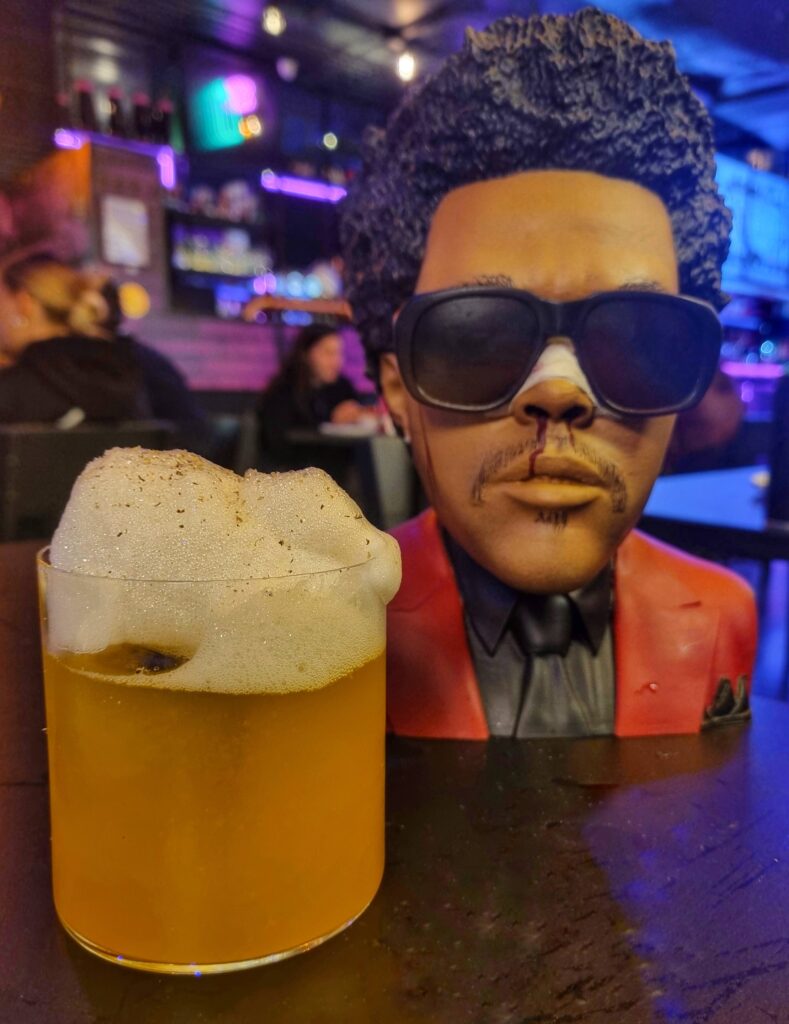 X.O. también lleva whisky, en este caso Blonde, que se complementa con Licor 43, jugo de naranja y cordial de Palo Santo, que lo vuelve novedoso, y una espuma de miel y jengibre con nuez moscada rallada. El cocktail transmite mucha información y sensaciones, donde prima lo especiado, con un palo santo que se deja sentir, algo lechoso y frutal que te puede hacer evocar a lo lejos a una piña colada. La nube tiene cierto picor y conversa con la base.