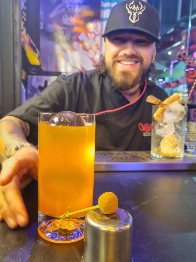 El corazón de Club Gordos es su coctelería de autor, la que desde hace ocho meses está a cargo de Yerson López, bar manager de la cadena que antes pasó por Galpón Italia. En septiembre estrenó una nueva carta que incluye dos mocktails y siete recetas propias, que se caracterizan por ser ligeras, frescas, elegantes, con personalidad y capas de sabor, la mayoría clarificadas y con algún garnish.
