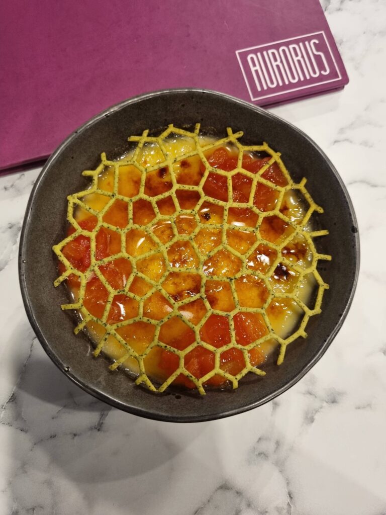 Crème Brûlée. Alucinante, pues este plato que fue parte de su primera cena clandestina está inspirado en un verdadero pastel de choclo y es justamente eso. Se trata de una crema caramelizada a base de choclo, mermelada de tomate y galleta de albahaca. Clap, clap.